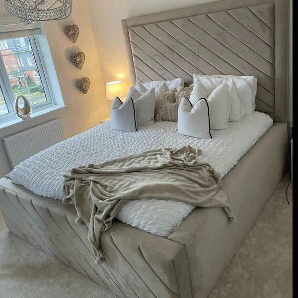 Introducing the Duke Lined Upholstered Bedframe – where sophistication meets comfort. Elevate your bedroom with this distinguished bedframe featuring a meticulously lined headboard and footboard. The Duke exudes timeless elegance, offering a perfect balance of classic design and modern appeal. The carefully crafted lines add a touch of refinement to your sleeping sanctuary, creating a focal point that speaks of both style and cosiness. Immerse yourself in the luxury of the Duke Lined Upholstered Bedframe and experience the perfect blend of tasteful design and ultimate comfort for a restful night's sleep.