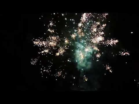 The show begins with a stunning fan of gold brocade mines that burst into vivid blue dahlia stars and red strobes. Straight-firing red blink mines ascend, revealing dirty gold breaks with blue and red strobes, followed by a dazzling combination of green pearls and diamond white blinks. A sweeping fan of white tails leads to thunderous white titanium salutes that echo across the night sky. Crackling mines then rise to golden spider bursts, setting the stage for volley after volley of dark, dirty gold fizzing stars intertwined with red, blue, and green pearls.