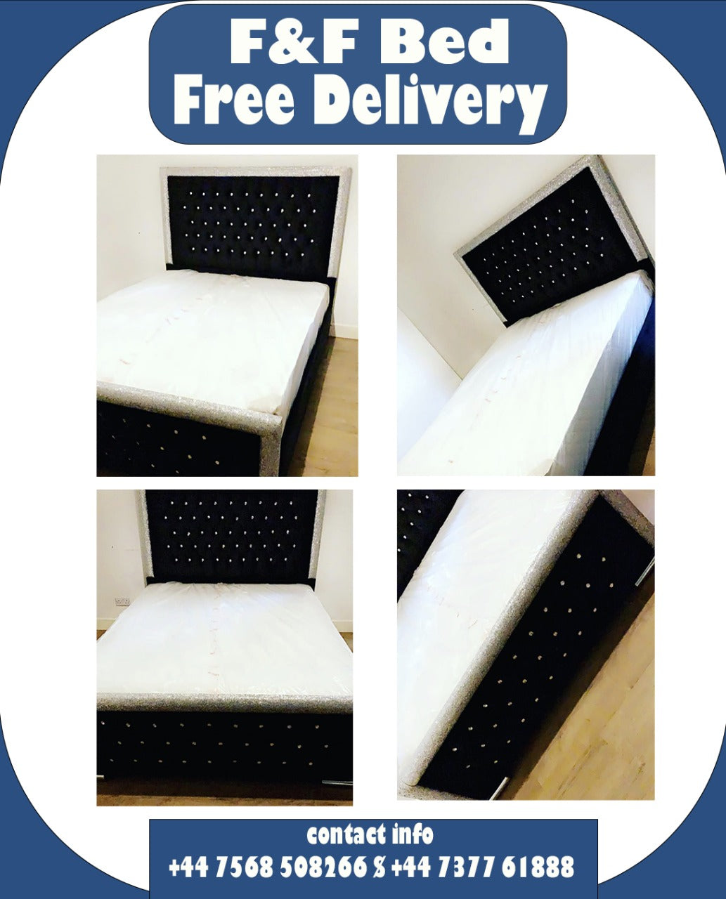 SOFIA CRUSHED VELVET FABRIC UPHOLSTERED DIAMANTE BED FRAME